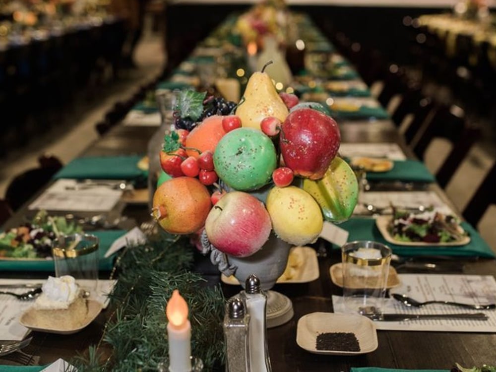 The decor at “A Wizards Christmas” is a visual feast for the eyes. Michaelis Events goes above and beyond to create an immersive environment that captures the essence of the wizarding world. The use of tropical florals, including Monstera leaves and Calla lilies, adds a lush, magical touch to the setting. Specialty rentals, such as rattan chargers and antique chinaware, elevate the dining experience and add a touch of elegance.