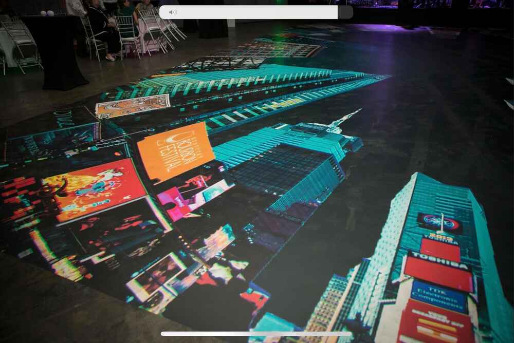 Engraved glassware gifts added a personalized touch, while living statues and a graffiti artist brought a unique, interactive element to the evening. The space was illuminated with custom lighting that recreated the “glow” of the New York City skyline at night, immersing guests in a truly magical atmosphere.