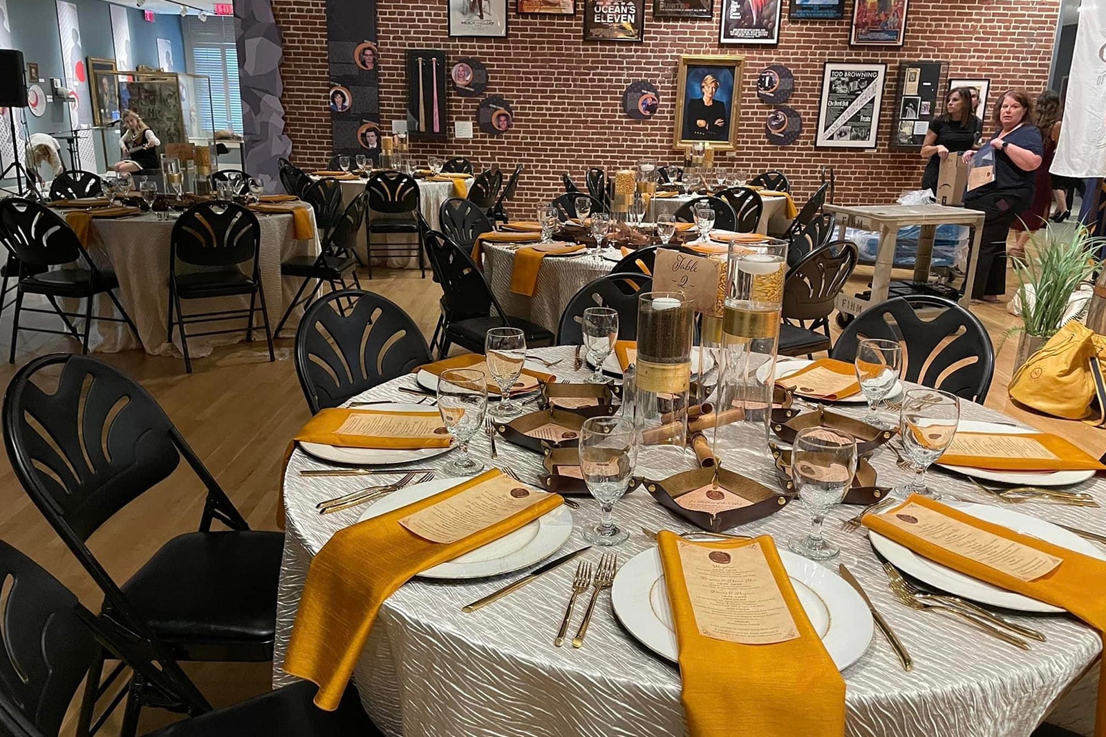 Michaelis Events takes pride in creating a visually stunning environment that enhances the event’s theme. Each year, they design custom tableware and linens, including: