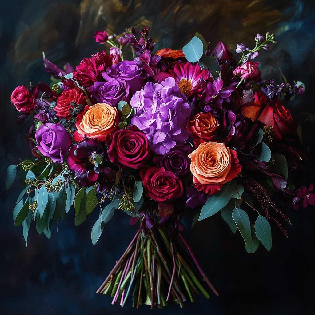 Why Itโs Trending: Vibrant, jewel-toned florals are making a comeback, offering a dramatic, elegant look for Louisville weddings. Popular Choices: Deep reds, purples, mustard yellows, and emerald greens with velvety roses, dahlias, and orchids. Best for: Vintage-inspired weddings, boho chic celebrations, and fall weddings in Louisville.