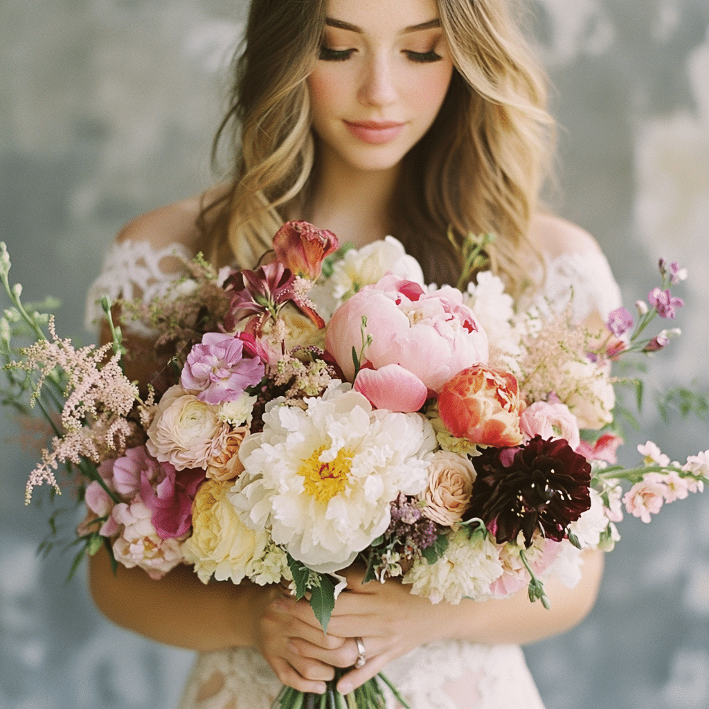 Why Itโs Trending: Bouquets featuring diverse textures create a lush, organic aesthetic. Popular Choices: Peonies, ranunculus, and dahlias mixed with delicate sweet peas, tulips, and lush greenery like eucalyptus. Best for: Garden weddings, rustic barn venues, and boho weddings in Louisville.