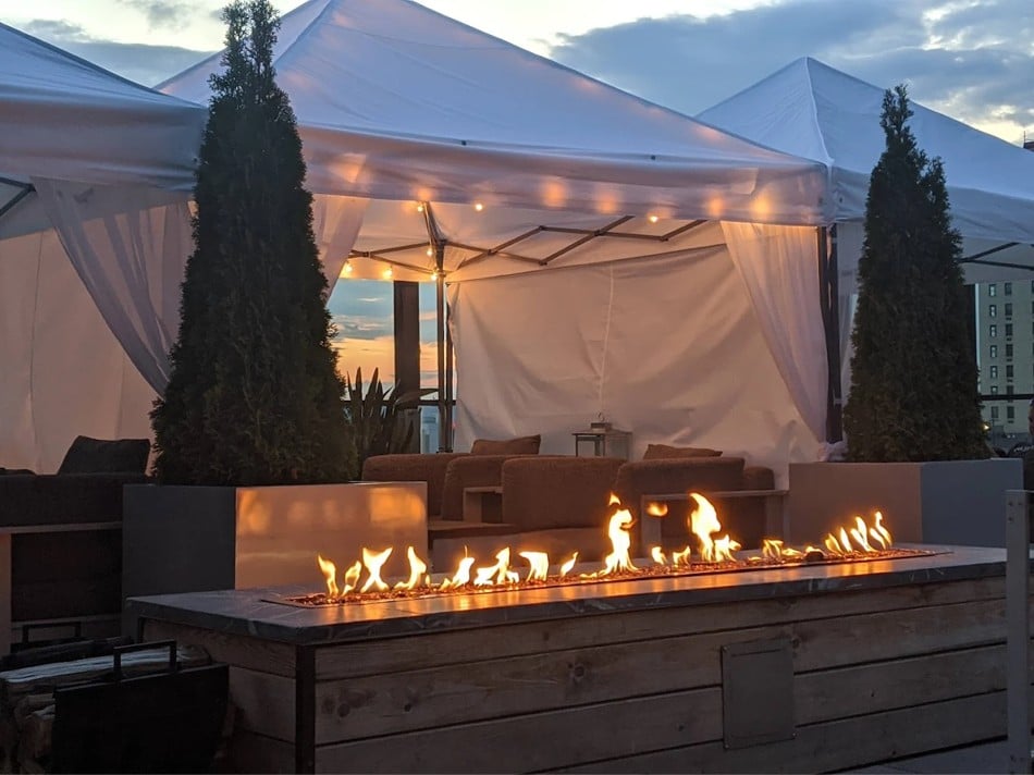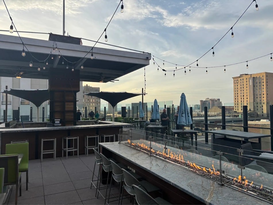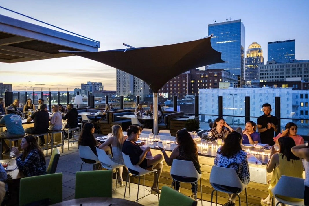 Situated atop the Hilton Garden Inn in downtown Louisville (350 W Chestnut St), this rooftop destination boasts breathtaking city skyline views and a seamless transition from hotel lobby to sky-high ambiance
