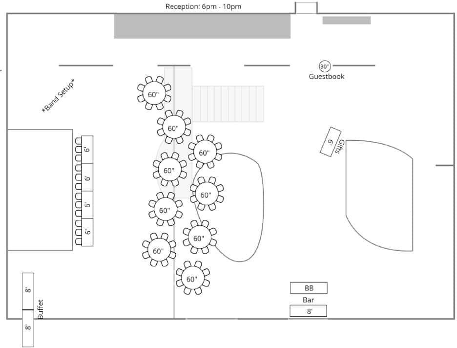 Explore this venue’s most popular layout ideas to help you make the best use of your space. Whether youโre planning a ceremony, cocktail hour, reception, or a unique setup, these tried-and-true floorplans are designed to create a natural, effortless flow for your celebration.