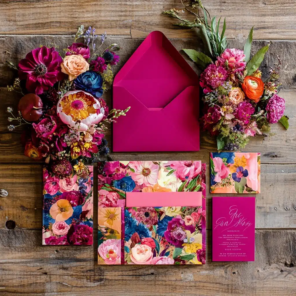 - Vivid Hues: Bright colors like fuchsia, royal blue, or emerald green are making a splash in modern invitations.